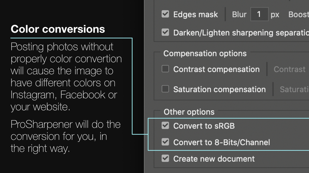 ProSharpener is a plugin for Photoshop that will help you to properly sharpen your photos. With a load of other features!